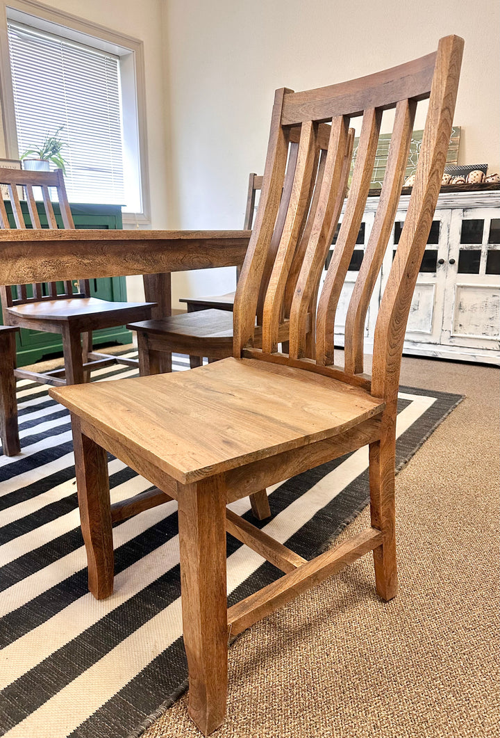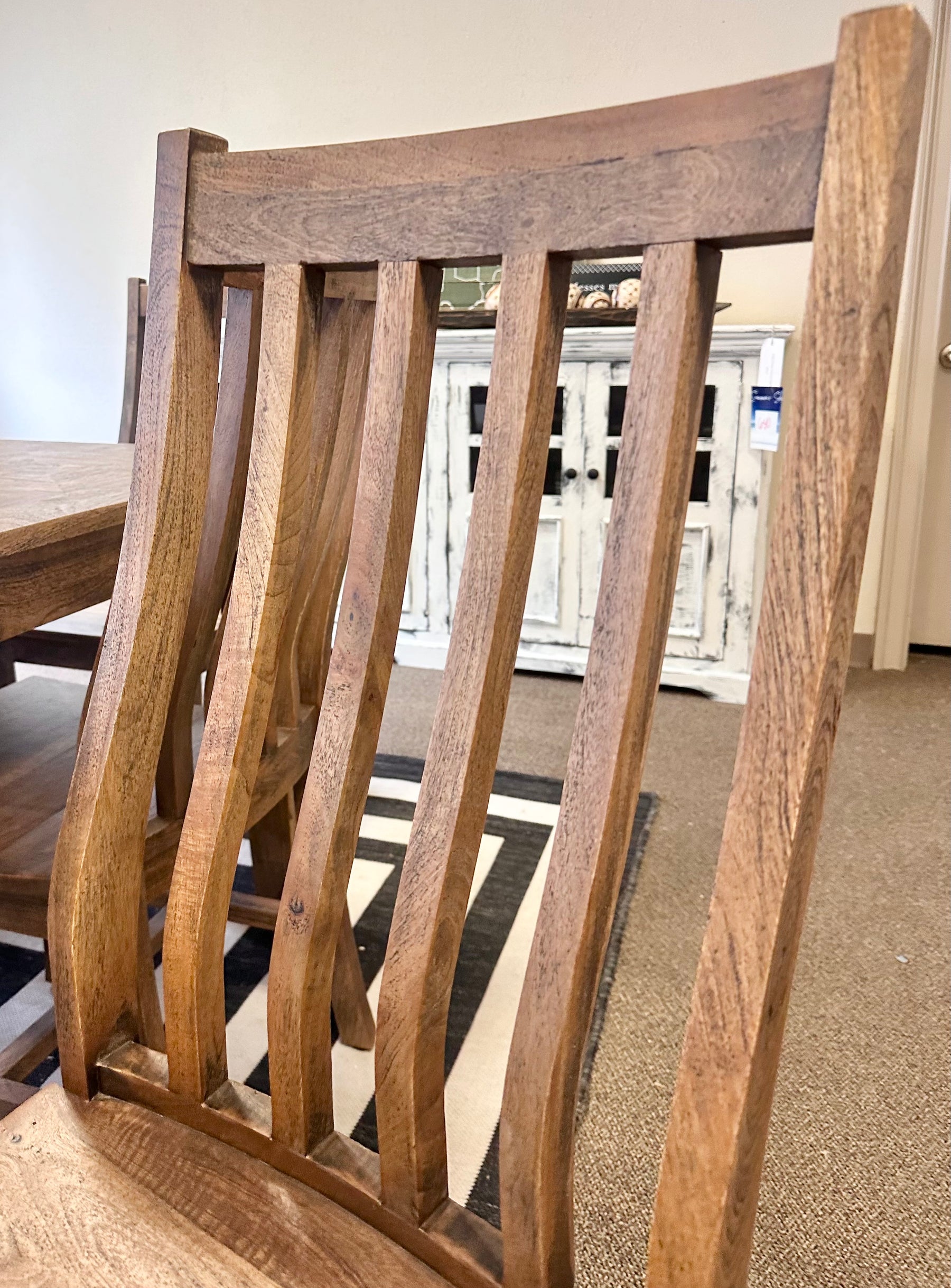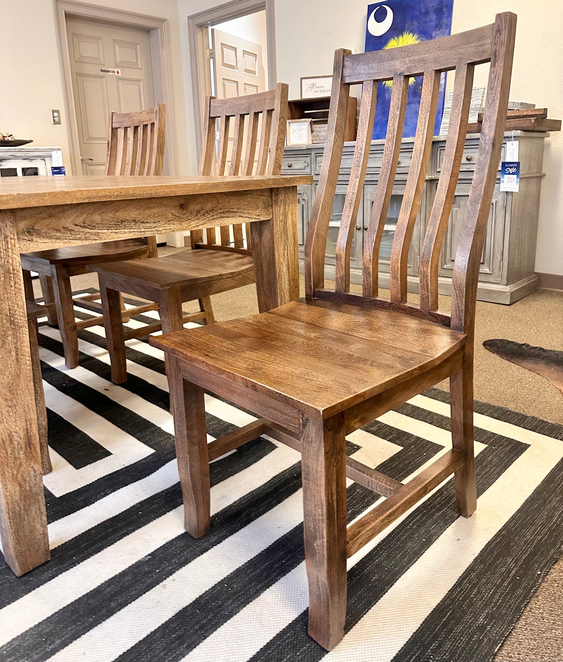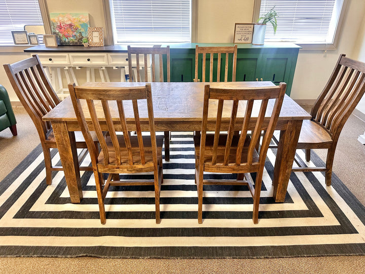 The parquet wood table top and shaker legs creates the classic dining collection for your family and friends to gather around.
