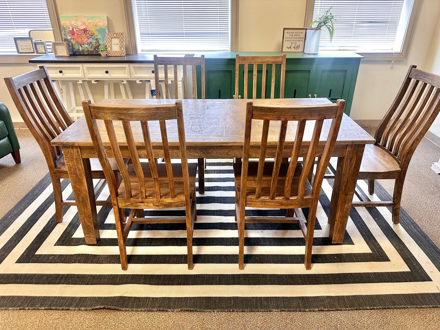 The wood in our line of furniture lives and breathes with the seasons. Find more furniture care information here.